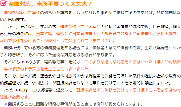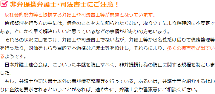 さらに言えば、本来は債務整理を取り扱ってはいけない事務所が債務整理の相談にのり、依頼を受けているということもあります。