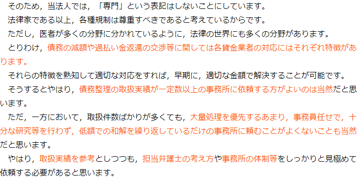 法律事務所であればどこでも債務整理を得意としているわけではなく、そもそも取り扱っていない事務所や、取り扱ってはいても年に数件しか対応しておらず不慣れな事務所、一部の手続きしか取り扱っていない事務所もあります。